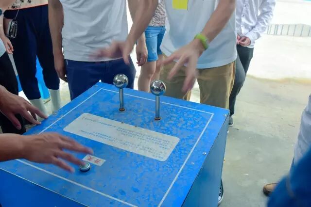 人体瞬间触电模拟体验可多人同时进行,大家便以触电体验仪器为中心牵手围成一圈,第一人和最后一人分别把手放在仪器的两个金属球上形成回路,按下开关。若要问体验的感受,大家纷纷表示新鲜又刺激,电流接通的一瞬间,对于胆子比较小的人来说,还真是一个小小的惊吓呢。
