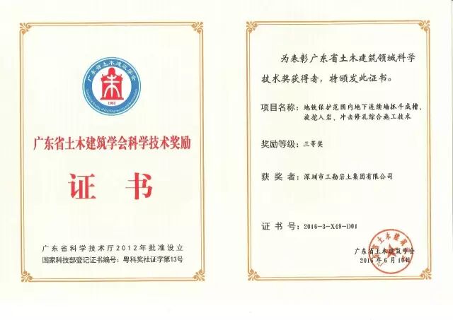 我司获得三项广东省土木建筑学会科学技术奖