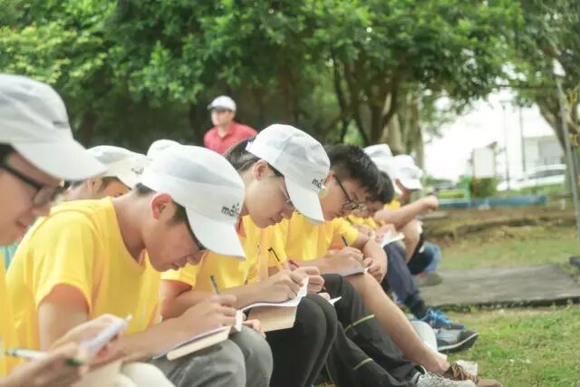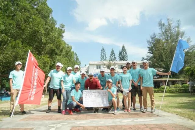 周六9点多到达目的地的时候,已经是艳阳高照了。我们一群人来到了训练场地,大家散乱得站着只和自己熟悉的同事聊天或是找个角落坐着乘凉。稍事休息过后,我们见到了这次组织拓展的老师。老师让我们集合之后,做了个简单的介绍,和我们玩了一些活跃气氛的准备游戏,便把我们分成了三个小队进行为期两天的拓展。我在的队伍是第一队,叫先锋队。第二队的名字很特别,叫FBI;第三队名字很有趣,叫猴赛雷。我们队硬着头皮完成了老师交给我们的第一个任务——选队长、队秘和制作队旗。因为彼此都比较陌生,所以刚开始大家你一言我一语且配合不好导致这个任务花了很长时间。