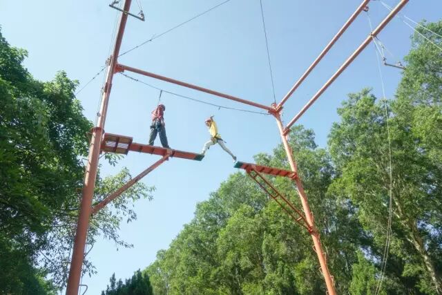 跨越断桥是周日第一个游戏,是三个小队同时进行的。规则是团队所有人在有保护措施的情况下,爬上断桥并完成两次跨越。这是对我们心理和生理的一次挑战。其实很早就听说过有这个项目了,只是自己没上去体验就感受不到断桥的高度也难以想象跨过去的难度。有些人比较胆大,几乎没有犹豫就很轻松完成了。但是还有一些同事是很艰难的克服内心的恐高上去的,或者是在断桥上犹豫很久迟迟不敢向断桥跃出这勇敢的一步。大家都还是圆满的完成了任务。我很佩服这群人,因为他们真正战胜了自己内心的恐惧,他们犹豫、挣扎,内心在跟自己不断的作斗争,最后懦弱还是被勇气战胜,跨出了那一大步。这是最值得敬佩的,其实人生本来就是在不停地超越自己。